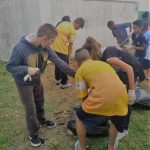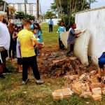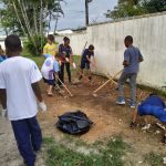 Com os alunos dos grupos “Arte e Movimento”, da professora Elisabete Laurindo e “Bate Lata e Percussão”  do professor Richard Assis, foi realizada a limpeza na frente do CEDIN. Nosso problema central é referente a colocação permanente de lixo em frente ao muro da escola, pela comunidade. Durante a coleta, alunos e professores fizeram uso de luvas e conversaram com a comunidade sobre a real situação e afirmaram que não gostariam de ver a escola com tanto lixo na frente. Nossa ação do dia 06 de maio, envolveu 25 alunos de 10 a 14 anos do período matutino. Aproveitamos para capinar a entrada do CEDIN.