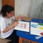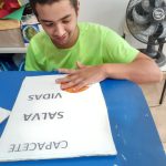 Durante as confecções dos cartazes para a semana do transito os alunos enxergaram a possibilidade de reaproveitar o que seria descartando, promovendo assim atitudes que nos ajudam a repensar nossas ações quanto a produção e descarte de lixo na natureza. Os alunos optaram por confeccionar os cartazes com papelão reciclado.