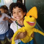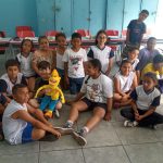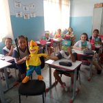 Na semana do dia 11 de setembro iniciei um trabalho com os alunos do 1º, 2º, 3º, 4º e 5º ano, onde eles puderam conhecer um dos personagens da revista do Zé Quest, os alunos amaram a presença do personagem (fantoche), os mesmos fizeram várias perguntas e quiseram tirar fotos ao lado dele.