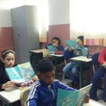 Fizemos um questionamento quanto a importância da reciclagem e formas de reduzir a produção de resíduos.Os alunos mencionaram sobre os tipos de lixeiras e suas funções para a coleta seletiva e se cada um fizer a sua parte,estarão colaborando com si próprio e garantindo um planeta mais limpo e melhor para se viver.Após esse questionamento foi entregue a revista do Zé Quest com tema”Reciclagem e Descarte: a Arte sem Mágica”,para alunos do 4ºA e 4ºB em horários separados e juntamente com a professora fizeram a leitura.