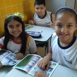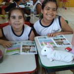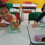 A professora entregou a revistinha para seus alunos. Explorou a capa, os títulos da história, os personagens, etc.. Depois, convidou as crianças para fazerem a leitura em duplas, com calma e atenção. Após a leitura das crianças fez a interpretação oral com a turma. Logo após, deixou que trocassem ideias com os colegas sobre as histórias, personagens, partes que mais gostaram… Para encerrar, as crianças fizeram um lindo desenho sobre a história e os personagens que mais gostaram.