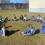 Para realizarmos esta atividade de roda de conversa sobre o meio ambiente, organizamos as crianças em roda no gramado do parque e instigamos que trouxessem para a conversa os seus conhecimentos prévios!