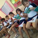 - Estando na semana do trânsito, os alunos já começam a entender que mesmo não sendo motoristas ainda, já fazem parte dele. Assim, aprendendo mais são responsáveis e também capazes de passar adiante. A história em quadrinhos “Apelo contra o atropelo” ajuda de forma lúdica a perceber a importância da ordem no trânsito e a atenção. Os alunos leram juntamente com a professora a história em quadrinhos “Apelo contra o atropelo”, onde cada criança escolhida era um personagem. Após a leitura, discutimos sobre o assunto, ouvindo situações em que eles já presenciaram acidentes por falta de atenção, ou não respeitar a sinalização. E o quanto eles já podem fazer para algumas coisas melhorarem.