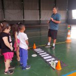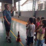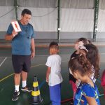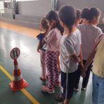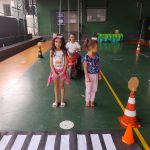 Os alunos da professora Myrla participaram da atividade na rota da vida no trânsito com o professor de Educação Física: Leandro, o qual explicou o significado das placas, seu uso de forma correta, o respeito ao próximo, etc.