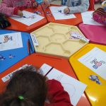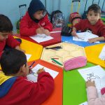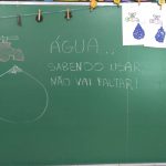 Em sala de aula, em roda de conversa, conversamos sobre a água e suas utilidades, a importância da água na natureza e nas nossas vidas e sobre como evitar o desperdício. Em seguida, foi dada uma folha de atividades para cada criança, onde elas tinham que pintar a torneira e colar papel picado na gota d ‘água. Foi uma atividade bem gostosa de se realizar.