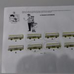 A professora Maribely trabalhou com seus alunos do 2º ano B sobre o comportamento no ônibus escolar. Falou sobre a importância de usar o cinto de segurança, não andar pelo corredor com o veículo em movimento, não colocar a cabeça nas janelas e respeitar o motorista. Em seguida, a professora entregou aos alunos as atividades do Zé Quest para marcar o ônibus diferente.
