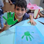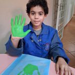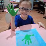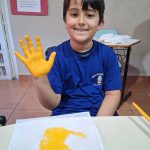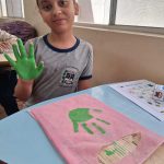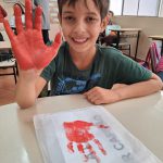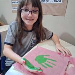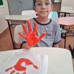 - Cada aluno recebeu a sacolinha para carro e materiais de pintura, aplicando os carimbos de mãos nas cores correspondentes.