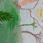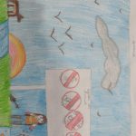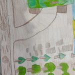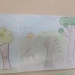Numa folha de papel os alunos ilustraram o passeio.