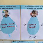 COORDENAÇÃO MOTORA: COM AUXILIO DA PROFESSORA CONFECÇÃO DE RECORTE DAS PRÓPRIAS MÃOS PARA O PAINEL PRINCIPAL DA ESCOLA. PINTURA DO CARTAZ “MEU PLANETA”, ATIVIDADE DIRECIONADA, SE EU FOSSE UMA GOTINHA… CADA ALUNO SUGERIU SUA FRASE COM A AJUDA DA PROFESSORA CADA ALUNO COLOU SUA FOTO NA SUA GOTA E A PROFESSORA ESCREVEU A FRASE SUGERIDA PELO ALUNO.
