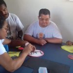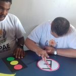 Na aula de artes, juntamente com a professora, os assistidos confeccionaram símbolos e placas de trânsito no qual eles iriam usar na passeata. Os assistidos recortaram, colaram, pintaram e aprenderam a reconhecer as placas e seus significados, para quando chegarem no trânsito pudessem ter a habilidade de reconhecer as placas e sinais.