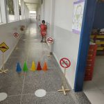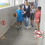 Simulamos uma pista com semáforos, placas de sinalização de faixa de pedestre para colocar em prática tudo o que aprendemos sobre respeitar as regras de trânsito.