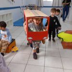 Ao perceber o interesse das crianças pelos meios de transportes, a professora iniciou uma conversa para saber qual o meio de transporte cada uma delas utilizava para vir até o CEI. As respostas foram surgindo e com isso, a professora confeccionou juntamente com as crianças alguns meios de transportes com caixas de papelão que foram pintadas pelas crianças com tinta guache. Em outro momento, através da brincadeira siga e pare, as crianças vivenciaram, momentos de atenção e concentração para atravessar na faixa de pedestre, observando as cores do sinal, representadas por bolinhas das cores vermelha, amarela e verde. Foram momentos de diversão e muito aprendizado para os pequenos.