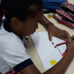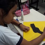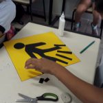 Após socialização, as crianças pintaram os desenhos de carros, desenharam e recortaram algumas placas de sinalização e criaram em grupos um símbolo sobre o respeito e atenção às placas de sinalização de trânsito.