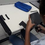 Os alunos puderam observar alguns exemplos de placas e sua classificação como de regulamentação, advertência, orientação de destino, sinalização de obras e outros.
