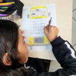 Os alunos do 5° ano 2, na aula de Arte, refletiram sobre a prevenção de acidentes no trânsito, realizando uma atividade sobre como deve ser o comportamento do aluno durante o uso do transporte escolar visto que quase 50% dos alunos utilizam o transporte escolar para vir para a escola. Para finalizar, escreveram algumas boas maneiras e coloriram a dobradura de um ônibus.
