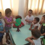 Os alunos participara de uma aula sobre como cuidar do ambiente. Fizeram uma apresentação no pátio onde houve a participação de várias salas. Trabalharam com pintura e montagem. A todo momento houve a mediação do professor.