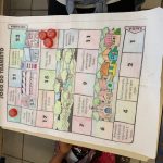 Eles iam jogando o dado e andando quantas casas saiam no dado e cumprindo os desafios que apareciam na trilha, até que um aluno chegasse no final.