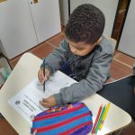 Com a ajuda do material impresso de nossa escola a professora trabalhou a importância de um trânsito seguro, quais os direitos e deveres do cidadão, principalmente com as cores do semáfaro e o significado de cada uma.