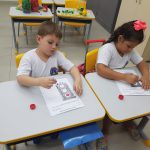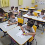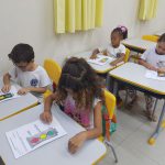 Os alunos fizeram o semáforo utilizando tinta guache. Em seguida, fizeram a colagem das palavras: pare, atenção e siga, de acordo com as respectivas cores. A intervenção foi feita através das dificuldades surgidas durante a atividade.