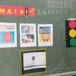 Um semáforo colorido foi colado no quadro. Enquanto isso a música tocava chamando a atenção dos alunos (AS CORES DO TRÂNSITO: SEMÁFORO) |MÚSICA INFANTIL SOBRE O TRÂNSITO.