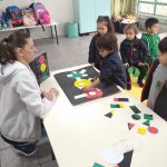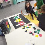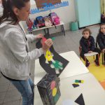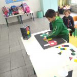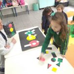 Na atividade, desencaixar as partes do semáforo representadas por formas geométricas, por vez cada criança escolhe uma forma e tenta encaixar no lugar correto. Antes de encaixar falar o nome da forma geométrica.