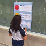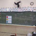 Com isso, foi mostrado que o vermelho se encaixa o pare, os alunos que precisam melhorar, o amarelo o preste atenção, algo não está legal, cuidado para não piorar, e o verde, prossiga, está tudo bem, continue assim. Cada aluno se auto avaliou e esse processo se repetirá todo dia ao final da aula.