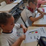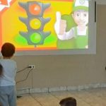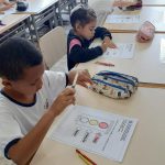 Aprendendo sobre trânsito assistindo vídeo interativo e realizando atividades educativas sobre semáforo suas cores e significados. Após assistirem o vídeo e roda de conversa fizeram as atividades de registro.