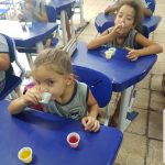 Ao final de mais uma sequência de atividades e após rodas de conversa e discussões positivas acerca do tema trânsito seguro com foco na distração, foi realizada uma atividade muito gostosa com gelatinas nas cores do semáforo, onde cada aluno recebeu três potinhos de gelatina, nas três cores/ sabores e tinham que montar o semáforo na ordem correta em cima das suas carteiras. Após a brincadeira, puderam comer as gelatinas.