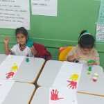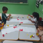 A turma da fase I e II confeccionaram semáforos utilizando as mãozinhas e guache. Além de se divertirem eles aprenderam as cores e suas funções no trânsito. Essa atividade explorou a criatividade, coordenação motora. Eles aprenderam brincando a função do semáforo.