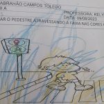 Ação realizada: Primeiro foi feito a atividade em folha A3 sobre a importância em atravessar na faixa de pedestre. Depois foi feito a pintura com guache nas cores e ordem corretas do semáforo em rolos de papel higiênico.