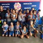 Pesando nisto e sempre com muita ludicidade, as crianças vivenciam uma atividade diferente. Usando três cores ( verde, amarelo e vermelho) para distinguir o que é certo e errado, tia Patricia utilizou exemplos de comportamento do dia a dia para definir as regrinhas de convivência em sala de aula.