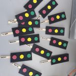 Foi confeccionado e entregue aos alunos, após atividade em folha e várias conversas e vídeo expositivo sobre semáforo e as cores que representa no trânsito, um palitoche para cada aluno com um mini semáforo, para levar para casa.