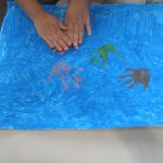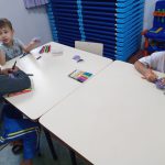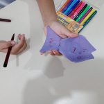 Confecção de peixinho com papelão da caixa de maça e pintura com guache e canetinha hidrocor.