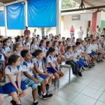 Após assistir vídeos informativos sobre a importância e utilidades da água, os alunos confeccionaram viseiras das gotinhas. Eles tinham o dever como combinado, que seriam os vigilantes da água em casa. Supervisionariam as famílias, para que todos pudessem economizar e crias hábitos de economizar  a água.