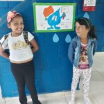 Alunas do 3º ano A apresentando seus cartazes.