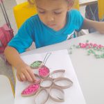 Durante a semana que iniciava a primavera, foi trabalhado diferentes atividades sobre o tema. Uma delas foi rasgar, amassar e colar papel crepom no rolo de papel higiênico fazendo uma linda flor.