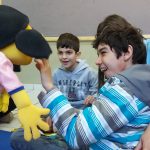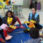 Os alunos da Fase 1-F os quais apresentam TEA e Deficiência Intelectual Grave, da Professora Selma do período da manhã em atendimento terapêutico puderam se divertir com os fantoches da família do Zé Quest na semana do dia do Pedestre. Mostraram interesse e interação com os pares e com os personagens.