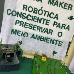 A educadora juntamente com os alunos, confeccionaram uma maquete sobre o meio ambiente. A mesma utilizou a cultura maker na atividade. As aulas de robótica estão dinâmicas e muito atrativas com essa cultura utilizada.