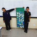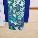 Como culminância das atividades, os estudantes criaram um cartaz coletivo utilizando a silhueta de suas mãos. Cada criança desenhou e recortou o contorno de sua mão em papel colorido, escrevendo mensagens de incentivo à preservação ambiental. As mãos foram coladas em um grande painel, simbolizando a união e o compromisso de todos com o cuidado do meio ambiente.