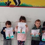 Conhecendo a coleta seletiva por meio de vídeo na contação de história Nati e a coleta seletiva, depois atividade sobre o meio ambiente com pintura de giz de cera verde, guache vermelho e verde. Com ajuda das monitoras e professora os alunos confeccionou uma árvore com rolo de papel e sulfite.