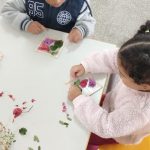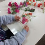 Para inicio de conversa, fizemos uma roda em que falamos sobre a importância do meio ambiente. Em seguida, fizemos um passeio pela escola, onde fomos coletando flores e folhas caídas pelo chão. Também trouxemos flores de casa e então montamos quadrinhos da natureza usando palito de sorvete e fita transparente. Fomos observando as cores, formas e tamanho. Cada criança escolheu o que colocar em seu quadrinho.