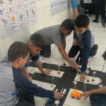 Os materiais utilizados foram os da escola e os carrinhos os alunos levaram de casa.
