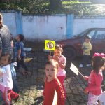 Na Semana do Pedestre realizamos uma roda de conversa sobre a importância da sinalização na cidade, do semáforo ,lombada, faixa de pedestre e em seguida fomos passear com os alunos para mostrar e explicar as sinalizações eles gostaram muito de participar onde mostramos os significados das placas de regulamentação e aproveitei e já mostrei os tipos de transporte que tinha durante o nosso passeio como carro ,ônibus , moto , bicicletas etc .