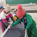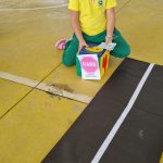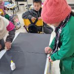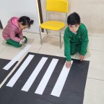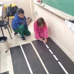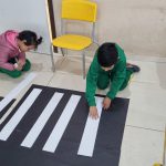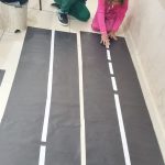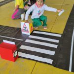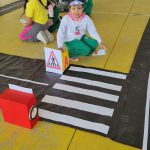Num primeiro momento a professora iniciou os trabalhos com a confecção das ruas e faixa de pedestre.