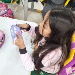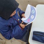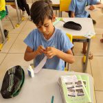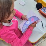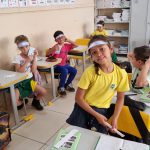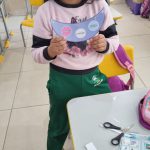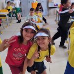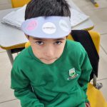 Na aula de hoje a professora trabalhou com seus alunos do 2° ano A e B, a confecção de uma viseira, se trata da continuação do projeto da semana do pedestre.