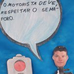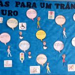 Em seguida confeccionaram um painel no corredor da escola para que outros alunos, professores, funcionários e visitantes pudessem apreciar e se informar a respeito de um Trânsito Seguro.