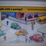 Para finalizar os alunos ganharam uma imagem para analisar e discutir. Verificando quais os erros dos pedestres e dos motoristas no trânsito.