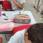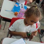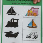 Durante a aula, foi lida uma história dos Meios de Transporte. A professora explanou sobre a importãncia desses na sociedade, como os caminhões, trens que transportam alimentos e outros como carro, motocicletas, bicicletas, navios, aviões… Os alunos comentaram sobre o assunto e em seguida recortaram e colaram os transportes em suas respectivas sombras.