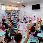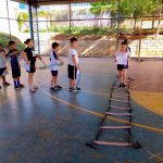 Os alunos assistiram vídeos sobre as sinalizações de trânsito e em seguida confeccionaram placas. Depois, utilizaram suas placas numa aula prática, sendo motoristas e pedestres circulando na quadra.
