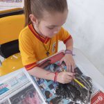 Pintura com tinta em isopor para confecção de mini maquete representando um pedestre atravessando na faixa.